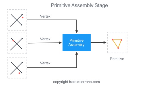 이 단계에서는 Vertices가 어떤 일련의 순서에 의해 연결되며, Primitive를 구성하게 된다. 아래 그림을 보면 대애충 감은 온다 뭔가 면 같은 역할을 하는가 보다.