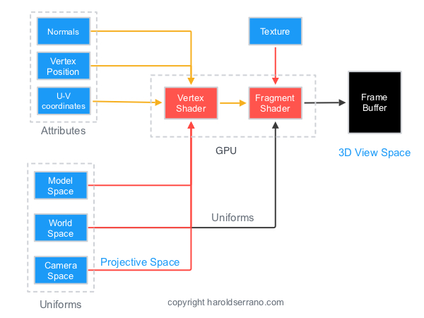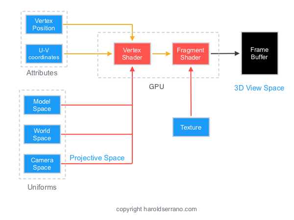 가장 기본적인 OpenGL 연산은 Vertex position (attibutes)와 Model-World-View 공간(Uniform) 데이터를 필요로 한다.