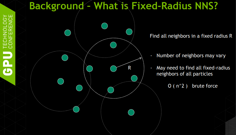 근접이웃탐색 알고리즘은 위 그림처럼 각 입자의 반경 R 내의 이웃 입자를 탐색합니다. 뭐 다양한 알고리즘이 존재하겠다만 찾다보니 트리 형식이나 그리드 형식으로 추려지는 것 같습니다. 본문의 내용은 그 중 그리드를 기반으로 고안된 알고리즘입니다. NVIDIA에서 나온 만큼 GPU 기반이며, 구현이 필요하다면 CUDA나 Metal등 GPU 머신을 사용할 수 있는 언어를 사용해야할 필요가 있습니다.