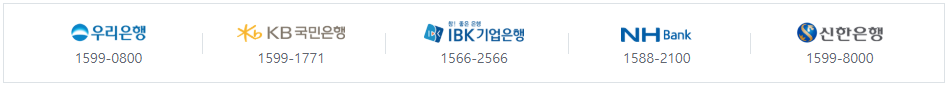 우리은행, 국민은행, 기업은행, 농협, 신한은행
