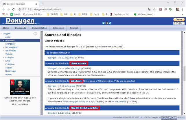 먼저 사이트(링크)에 접속해 독시젠을 다운로드한다. 리눅스나, MaxOS용 독시젠도 있으니 사용환경에 따라 다운 받도록 한다.