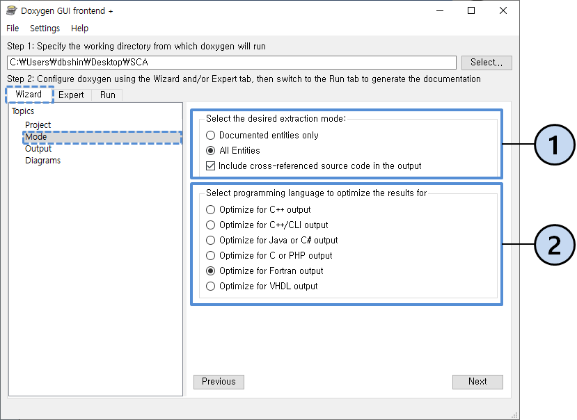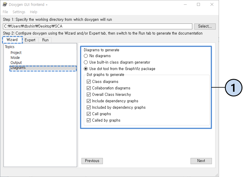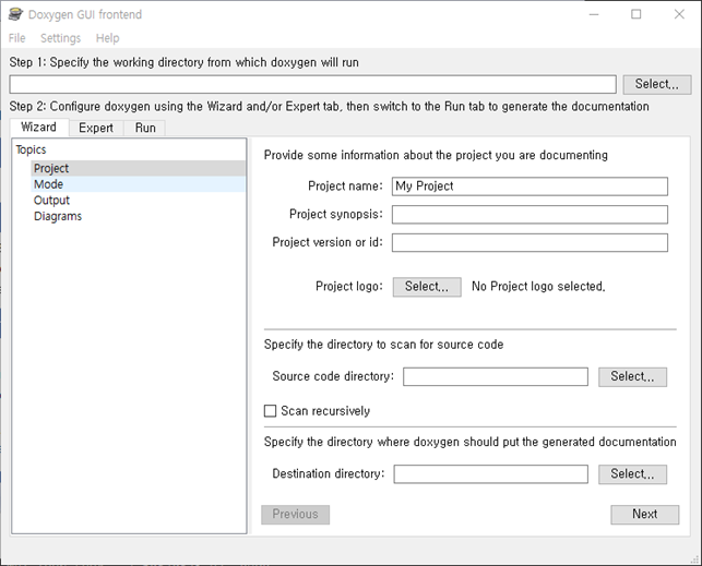 설치를 완료하면 Doxywizard 파일이 설치되며, 이를 실행하면 <그림6>과 같은 프로그램이 실행된다.