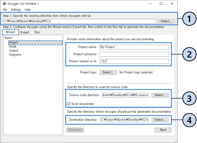 ① 프로젝트 디렉토리 입력 (소스코드가 아닌 프로젝트 폴더)