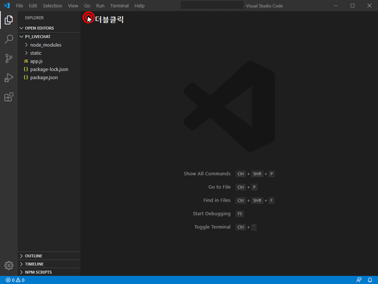 (1) [ Ctrl + ` ] 을 눌러서 터미널을 열고, [ node app.js ] 명령어를 입력해 짜여진 스크립트를 실행합니다.