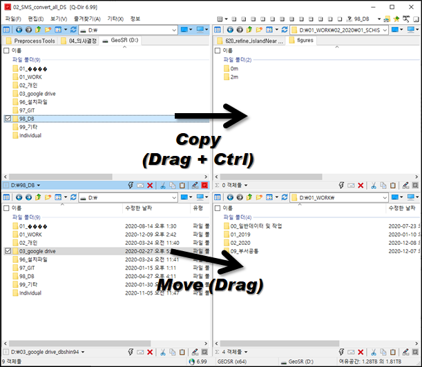위 그림은 단순한 복사/이동에 대한 내용이며, 이번 포스팅은 Q-dir의 고급 활용법이 되겠다. 설치 관련 포스트는 아래 링크로!