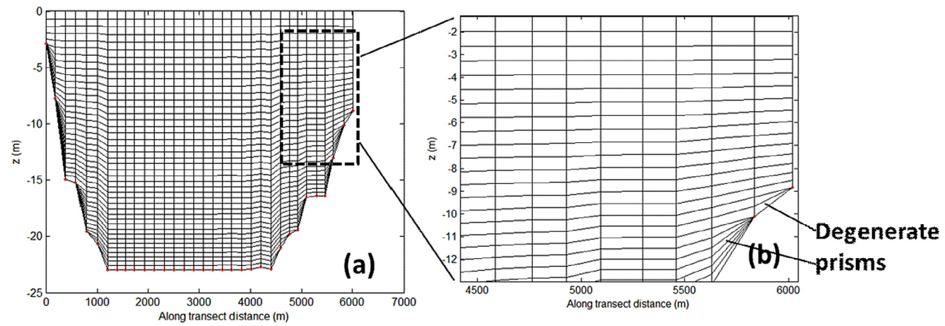 아이디어는 간단해 보인다. 수평 노드들마다 각각의 sigma 층을 주고, 층의 개수가 차이나니 그림에 보이는 것과 같이 degenerate prisms을 끼워 넣는 것이다. 이를통해 계단현상을 완화하고, 정밀하게 해저지형을 표현할 수 있다.