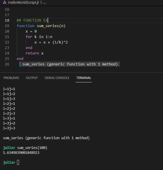 Juila는 JIT(Just-In-Time) 컴파일러라서 더 높은 효율을 내려면 컴파일을 미리해놓는것이 좋다. 그렇게 하려면, 함수로 만들어 놓으면 빠르다! 그럼 함수를 만드는 법을 알아보자.